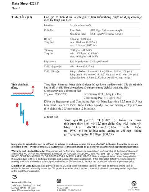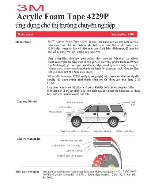 – Băng keo 3M 4229P chịu nhiệt đến 70 C